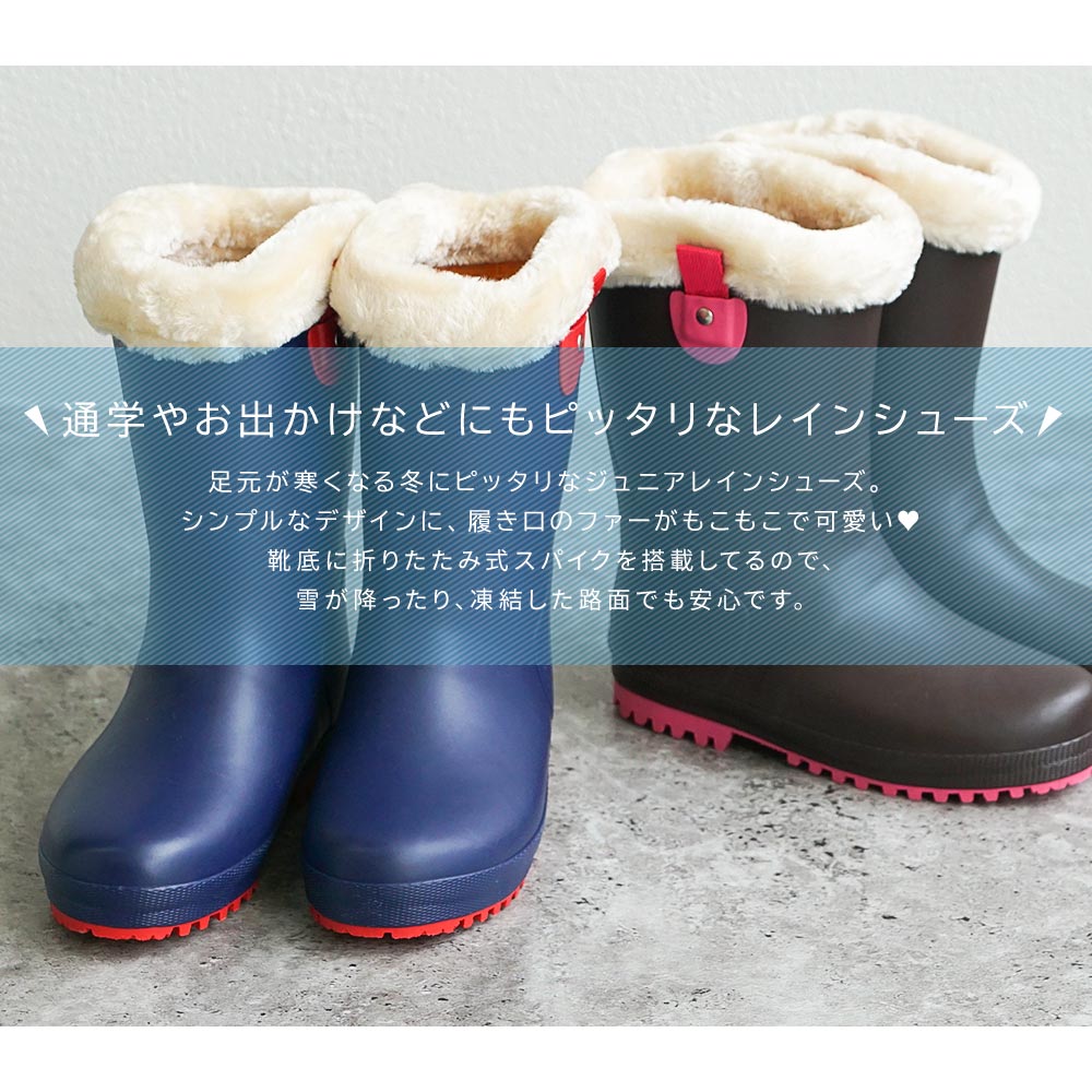 長靴 キッズ 女の子 レインブーツ キッズ ファー付き あったか 子供靴 雨靴 子供 スノーブーツ ウインターブーツ スパイク付き 防滑 滑り止め 防水 防雪 雪 ノンスリップ かわいい 歩きやすい 履きやすい 通園 通学 雪遊び ブラウン ネイビー 2791 送料無料