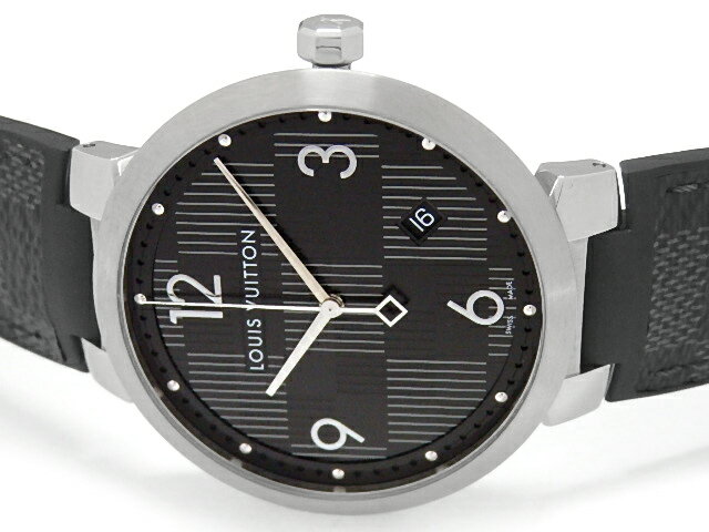ルイヴィトン タンブール ダミエ Q1D07 クォーツ メンズ 黒/グレー文字盤 【中古】【DS KATOU】