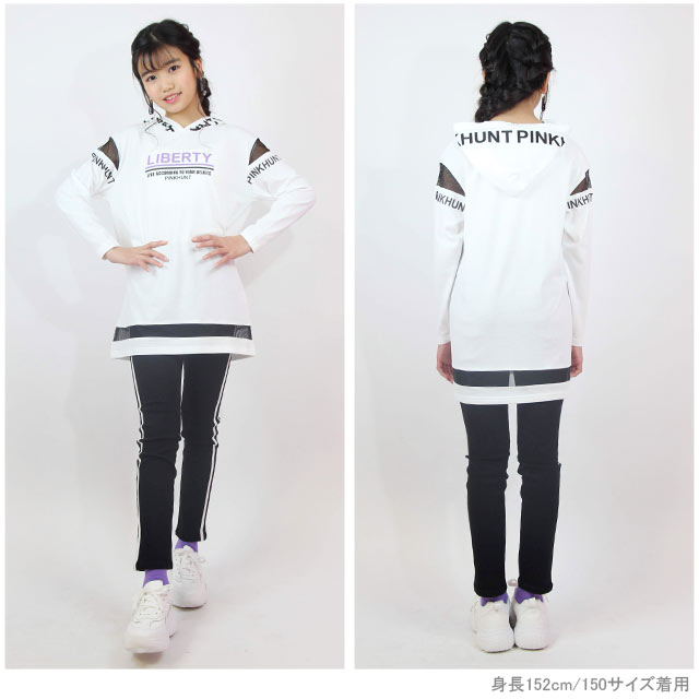 長袖 トップス チュニック丈 フード付き 薄手 ロングパーカー ロングTシャツ メッシュライン スポーティー 肌見せ 個性的 カジュアル トレンド 可愛い かっこいい ガーリー ガールズコーデ ジュニアサイズ 小学生 中学生 かわいい おしゃれ POP ポップ ダンス ★