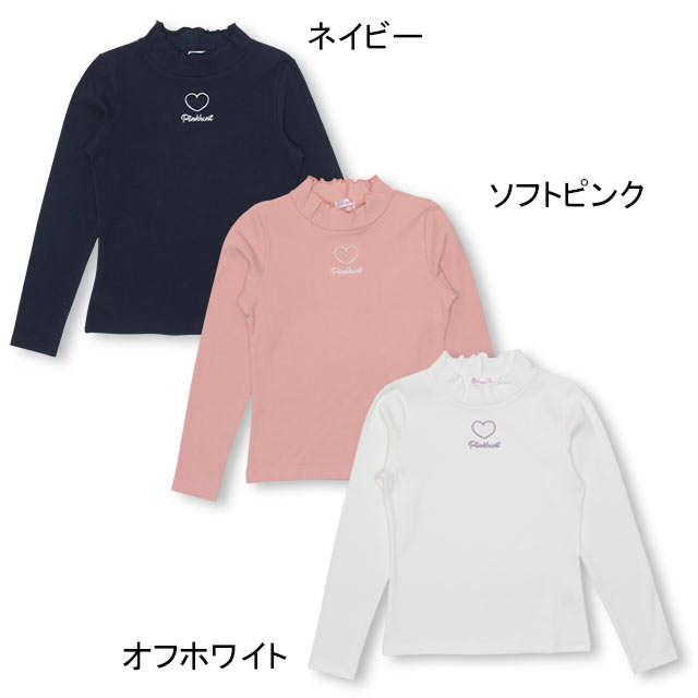 綿95%,ポリウレタン5% リブ編みニット 刺繍/ハート穴開き 襟フリル ※写真のプリント位置と多少の誤差が生じる場合があります。