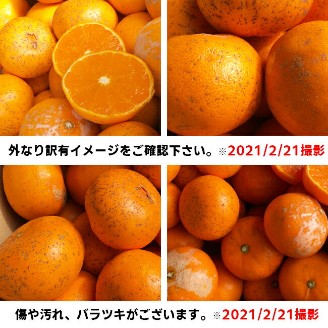 大半が木の外なりで、風で枝にこすれて傷や汚れがついていますが、 その分太陽をたくさん浴あびて育った、中身は美味しく食べられるみかんです。
